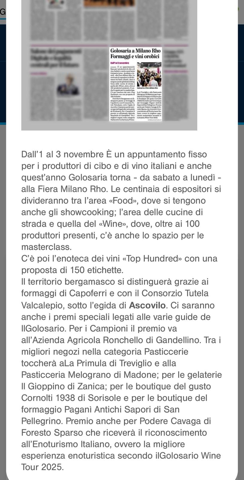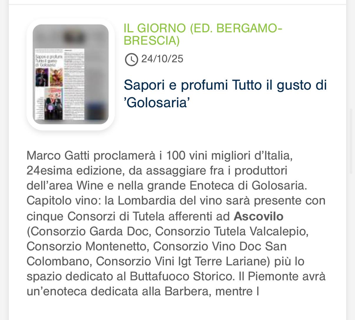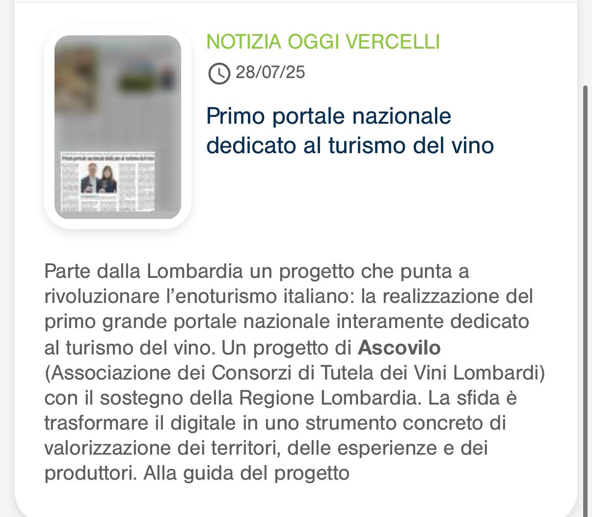 Rassegna 2025 Giovanna Prandini rieletta alla guida di Ascovilo Scopri di più Giovanna Prandini confermata leader di Ascovilo Scopri di più Giovanna Prandini resta alla guida di Ascovilo Scopri di più Giovanna Prandini resta alla guida di Ascovilo Scopri di più Un mantovano tra i vertici di Ascovilo Scopri di più Giovanna Prandini confermata leader di Ascovilo Scopri di più Un mantovano tra i vertici di Ascovilo Scopri di più Giovanna Prandini rieletta alla guida di Ascovilo Scopri di più Primo portale nazionale dedicato al turismo del vino Scopri di più Primo portale nazionale dedicato al turismo del vino Scopri di più Strade dei vini e dei sapori di lombardia Scopri di più Per Ferretti ordine su del 36$ E il riva più grande di sempre Scopri di più Partecipazione oggi alla festa Fim Scopri di più Sapori e Profumi Tutto il gusto di 'Goloseria' Scopri di più Sapori e Profumi Tutto il gusto di 'Goloseria' Scopri di più Strade dei vini e dei sapori, alla guida Gianni Bosselli La ricerca sulle imprese preentata da Guidesi Scopri di più Le strade del vino alleate per raccontare i territori Scopri di più Opere strategiche senza fondi: 84 milioni cercasi Scopri di più Taglio del nastro per "Colline in bolle" più di 80 etichette in degustazione Scopri di più Taglio del nastro per "Colline in bolle" più di 80 etichette in degustazione Scopri di più Tradizione e Trasformazione Le trattorie coi "Tre Gamberi" Scopri di più I vent'anni di Golosaria nel piatto, nel bicchiere e in una mostra Scopri di più Golosaria a Milano Rho formassi e vini orobici Scopri di più Golosaria a Milano Rho Gruppo 121 Formaggi e vini orobici Scopri di più Golosaria a Milano Rho Formaggi e vini orobici Scopri di più Vent'anni di Golosaria la fiera che celebra il gusto della contemporaneità Scopri di più Vent'anni di Golosaria la fiera che celebra il gusto della contemporaneità Scopri di più Merano Wine Festival: il made in BS è protagonista Scopri di più Merano Wine Festival: il made in BS è protagonista Scopri di più Vino, i consorzi bresciani al Merano WineFestival Scopri di più Vino, i consorzi bresciani al Merano WineFestival Scopri di più Vini bresciani protagonisti al Merano Wine Festival Scopri di più Vini bresciani protagonisti al Merano Wine Festival Scopri di più Vino, i ricavi crescono del 2% soffrono le aziende medio-piccole Scopri di più Vino, i ricavi crescono del 2% soffrono le aziende medio-piccole Scopri di più Villagio di Natale tra pattini e sapori Scopri di più «L'agricoltura nel futuro con le nuove generazioni» Scopri di più L'Intelligenza artificiale in campo per la sicurezza Premio a Perla del Garda Scopri di più L'Intelligenza artificiale in campo per la sicurezza Premio a Perla del Garda Scopri di più «Ai» e sicurezzain campo, premio europeo a Perla del Garda Scopri di più Beduschi: "Per le feste brindiamo lombardo" Scopri di più Dieci milioni per sostenere i produttori di vino lombardi Scopri di più Promozione del vino Risorse per oltre 10 milioni Scopri di più «Agricoltura e turismo alleati per il vino» Scopri di più Vino, dalla Regione 15 milioni di euro per la promozione Scopri di più Vino regionale Sondrio al centro Scopri di più