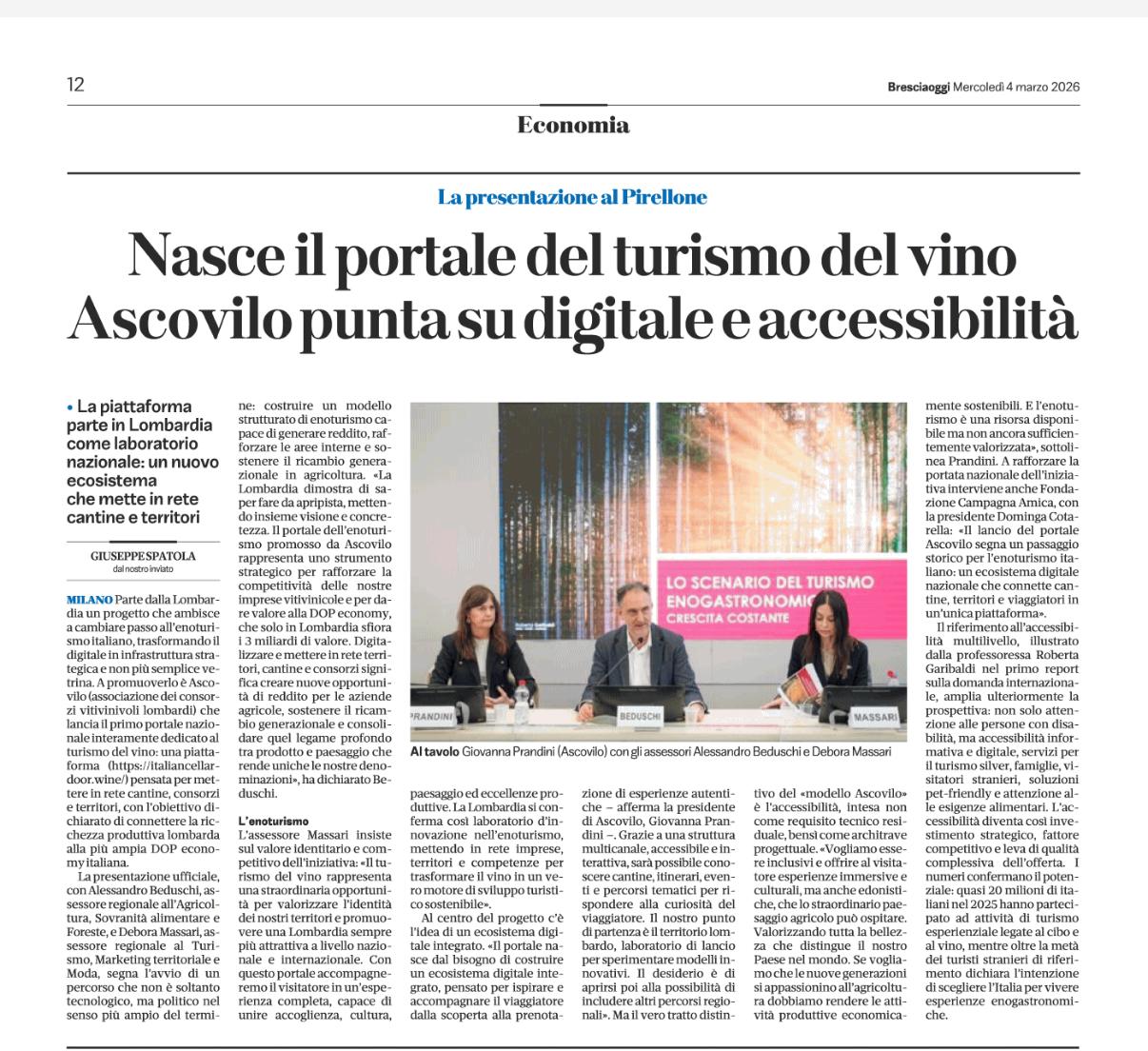 Rassegna 2025 Giovanna Prandini rieletta alla guida di Ascovilo Scopri di più Giovanna Prandini confermata leader di Ascovilo Scopri di più Giovanna Prandini resta alla guida di Ascovilo Scopri di più Giovanna Prandini resta alla guida di Ascovilo Scopri di più Un mantovano tra i vertici di Ascovilo Scopri di più Giovanna Prandini confermata leader di Ascovilo Scopri di più Un mantovano tra i vertici di Ascovilo Scopri di più Giovanna Prandini rieletta alla guida di Ascovilo Scopri di più Primo portale nazionale dedicato al turismo del vino Scopri di più Primo portale nazionale dedicato al turismo del vino Scopri di più Strade dei vini e dei sapori di lombardia Scopri di più Per Ferretti ordine su del 36$ E il riva più grande di sempre Scopri di più Partecipazione oggi alla festa Fim Scopri di più Sapori e Profumi Tutto il gusto di 'Goloseria' Scopri di più Sapori e Profumi Tutto il gusto di 'Goloseria' Scopri di più Strade dei vini e dei sapori, alla guida Gianni Bosselli La ricerca sulle imprese preentata da Guidesi Scopri di più Le strade del vino alleate per raccontare i territori Scopri di più Opere strategiche senza fondi: 84 milioni cercasi Scopri di più Taglio del nastro per "Colline in bolle" più di 80 etichette in degustazione Scopri di più Taglio del nastro per "Colline in bolle" più di 80 etichette in degustazione Scopri di più Tradizione e Trasformazione Le trattorie coi "Tre Gamberi" Scopri di più I vent'anni di Golosaria nel piatto, nel bicchiere e in una mostra Scopri di più Golosaria a Milano Rho formassi e vini orobici Scopri di più Golosaria a Milano Rho Gruppo 121 Formaggi e vini orobici Scopri di più Golosaria a Milano Rho Formaggi e vini orobici Scopri di più Vent'anni di Golosaria la fiera che celebra il gusto della contemporaneità Scopri di più Vent'anni di Golosaria la fiera che celebra il gusto della contemporaneità Scopri di più Merano Wine Festival: il made in BS è protagonista Scopri di più Merano Wine Festival: il made in BS è protagonista Scopri di più Vino, i consorzi bresciani al Merano WineFestival Scopri di più Vino, i consorzi bresciani al Merano WineFestival Scopri di più Vini bresciani protagonisti al Merano Wine Festival Scopri di più Vini bresciani protagonisti al Merano Wine Festival Scopri di più Vino, i ricavi crescono del 2% soffrono le aziende medio-piccole Scopri di più Vino, i ricavi crescono del 2% soffrono le aziende medio-piccole Scopri di più Villagio di Natale tra pattini e sapori Scopri di più «L'agricoltura nel futuro con le nuove generazioni» Scopri di più L'Intelligenza artificiale in campo per la sicurezza Premio a Perla del Garda Scopri di più L'Intelligenza artificiale in campo per la sicurezza Premio a Perla del Garda Scopri di più «Ai» e sicurezzain campo, premio europeo a Perla del Garda Scopri di più Beduschi: "Per le feste brindiamo lombardo" Scopri di più Dieci milioni per sostenere i produttori di vino lombardi Scopri di più Promozione del vino Risorse per oltre 10 milioni Scopri di più «Agricoltura e turismo alleati per il vino» Scopri di più Vino, dalla Regione 15 milioni di euro per la promozione Scopri di più Vino regionale Sondrio al centro Scopri di più Scende in campo Ascovilo «Le denominazioni vanno sempre difese» Scopri di più Enoturismo e accessibilità: Beduschi e Massari alla presentazione del nuovo portale Scopri di più Nasce il portale del turismo del vino Ascovilo punta su digitale e accessibilità Scopri di più Nasce il portale del turismo del vino Ascovilo punta su digitale e accessibilità Scopri di più Il vino, carta per il turismo Anche con il nuovo portale Scopri di più La ricchezza del turismo del vino Nasce il primo portale nazionale Scopri di più